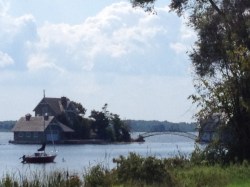 Some island homes are connected to other homes and island boathouses in the river.
