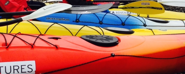 And there they were, kayaks in every primary color lined up near the blue morning water.