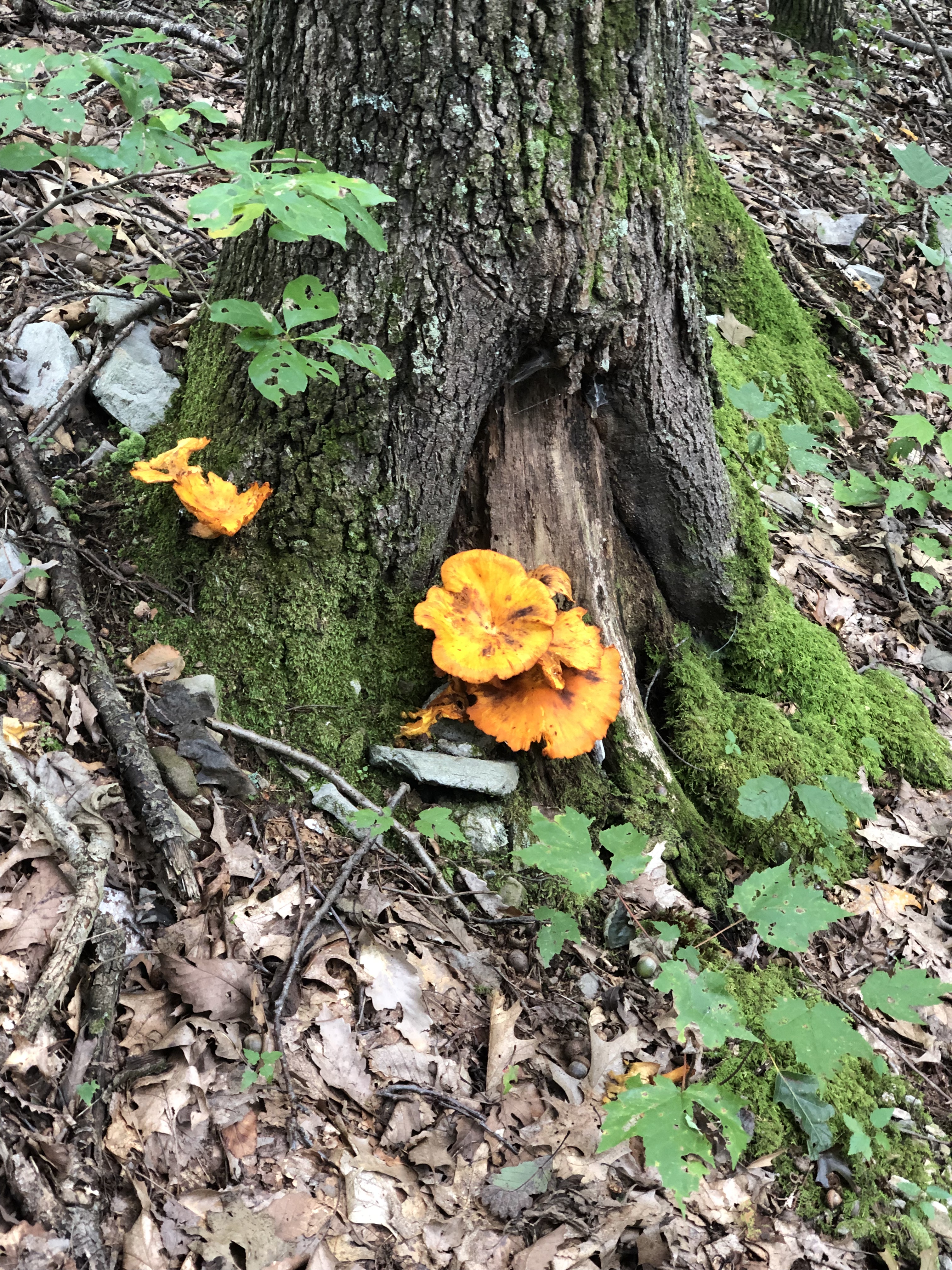 Along the way we spotted the oversized, beautiful mushroom identified by our hike leader as Chicken of the Woods. It is reportedly safe to eat (please check it out with someone who knows about these things before doing so) and is so tasty is can be used as a meat replacement.