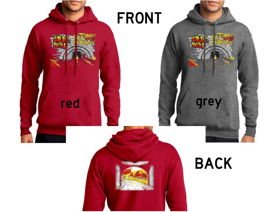It was the sweatshirt that drew me in, hooded with both front and back emblazoned with scenes from the long abandoned Pennsylvania turnpike tunnels near Breezewood.