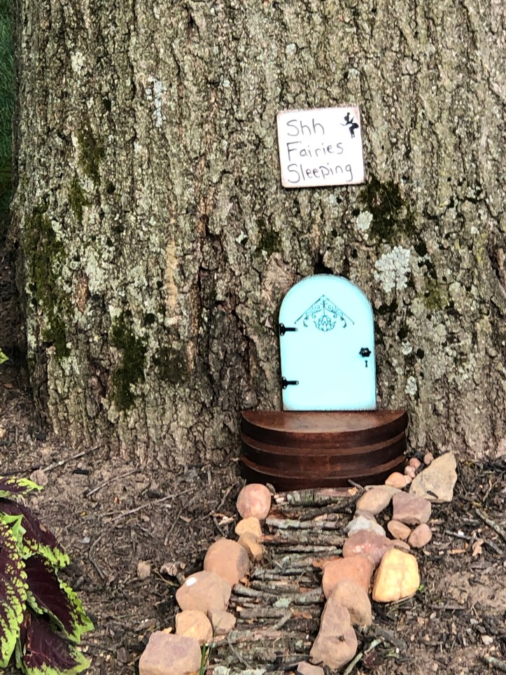 I quietly strolled by the fairy house at the base of a maple tree so as not to disturb its occupants.