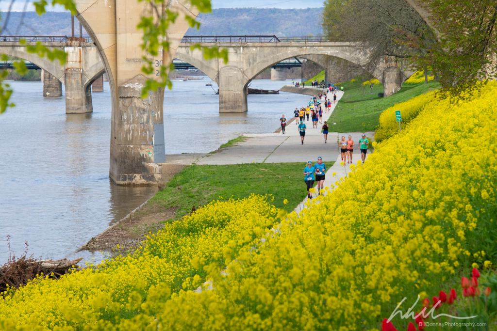 Every year, a corps of super-fast runners show up looking for strong competition and maybe, just maybe a shot at breaking course records.  Those of us mid-pack and back-of-tthe pack watch in awe as they stream above across the bridges where we can view from our pace on the course several miles behind them.