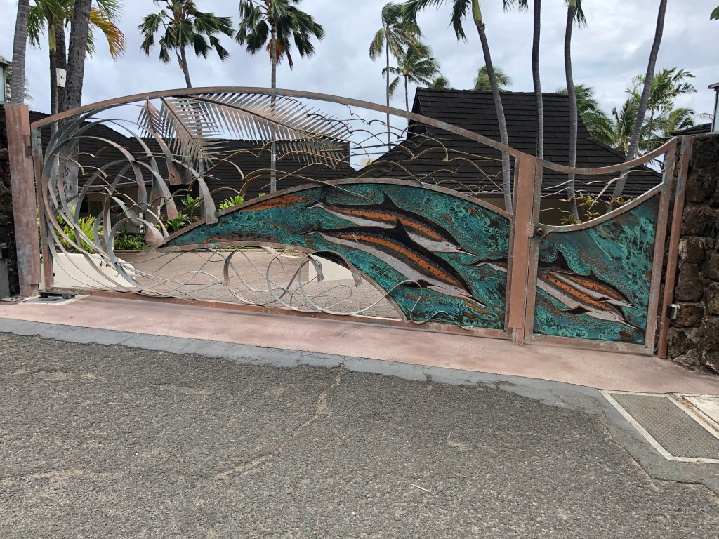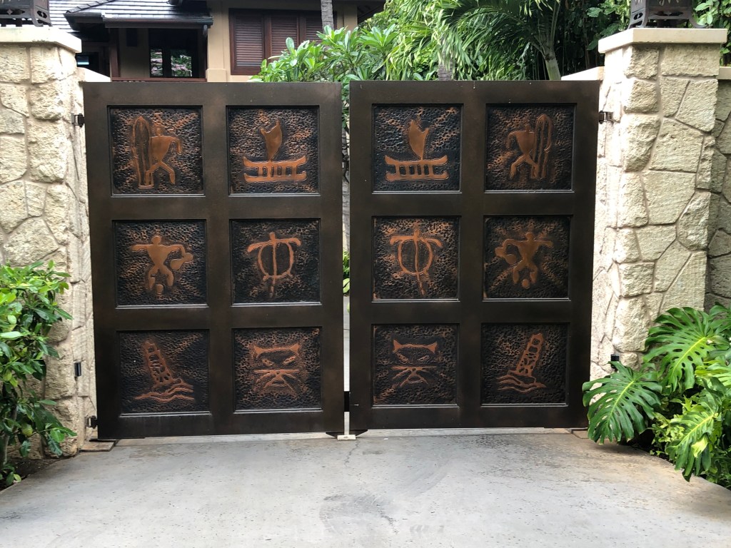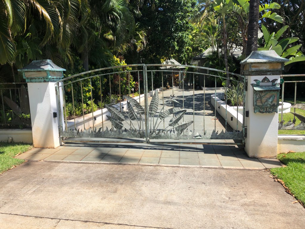 What most gates on the island of O’ahu have in common are the use of elements: wood and metal. Beyond that their style varies, depending on the home and taste of the owners.
