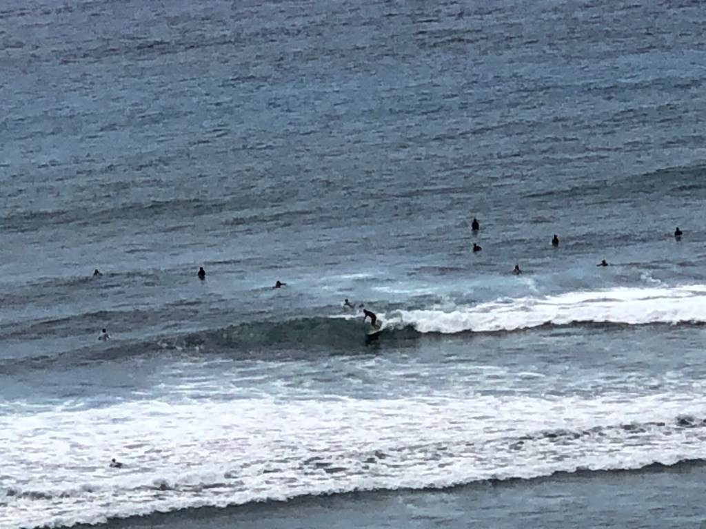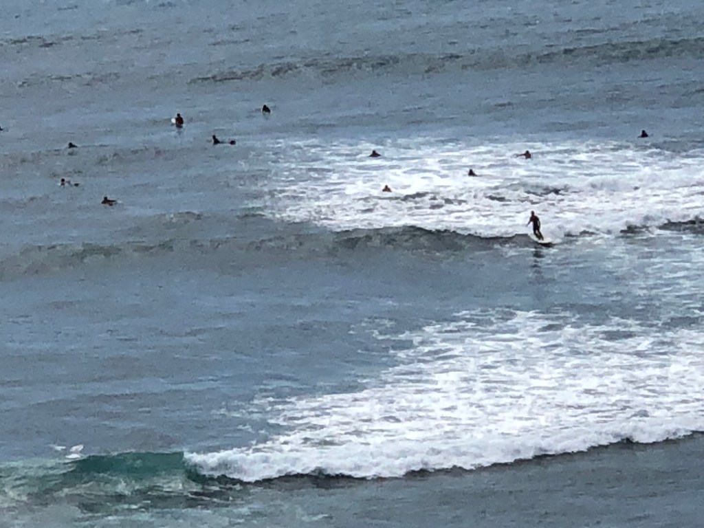 Mile 11 up Diamond Head Road was a slugfest. It is always a mental pickup at the crest of this hill to quickly glance over the cliff at the early morning surfers.