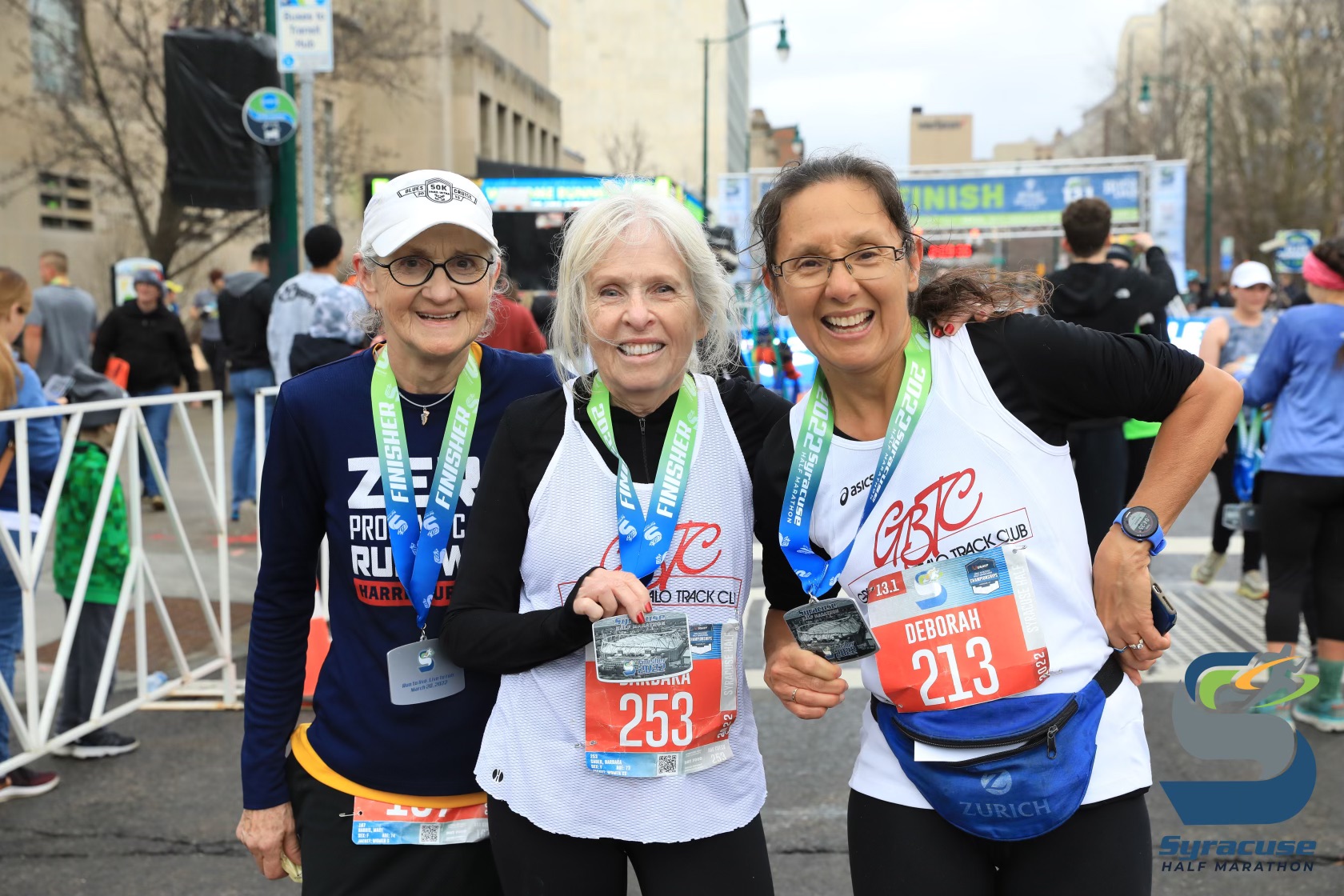 At the finish I took a moment to celebrate with Barbara Sauer and Deborah Miller with the Greater Buffalo Track Club.