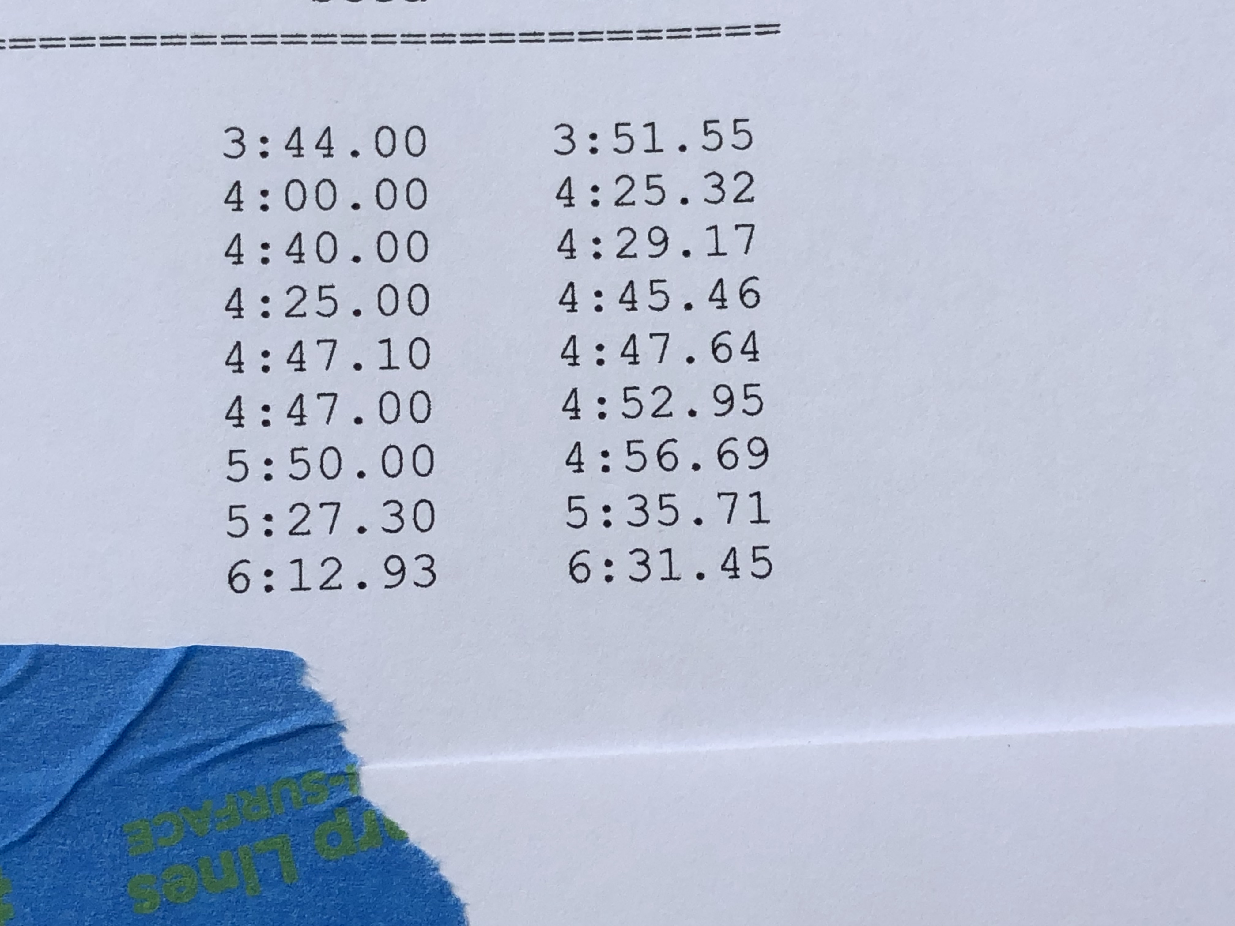 We were instructed to be in a bullpen-type area 20 minutes before our race. After checking in, a USATF official walked us to the start where another USATF official took over, instructing us on lining up, when we could move in another lane etc. I was in Lane 5, seeded fifth based on my previous races. We were off and after the first lap I felt good. I managed to pass several other runners before the finish.