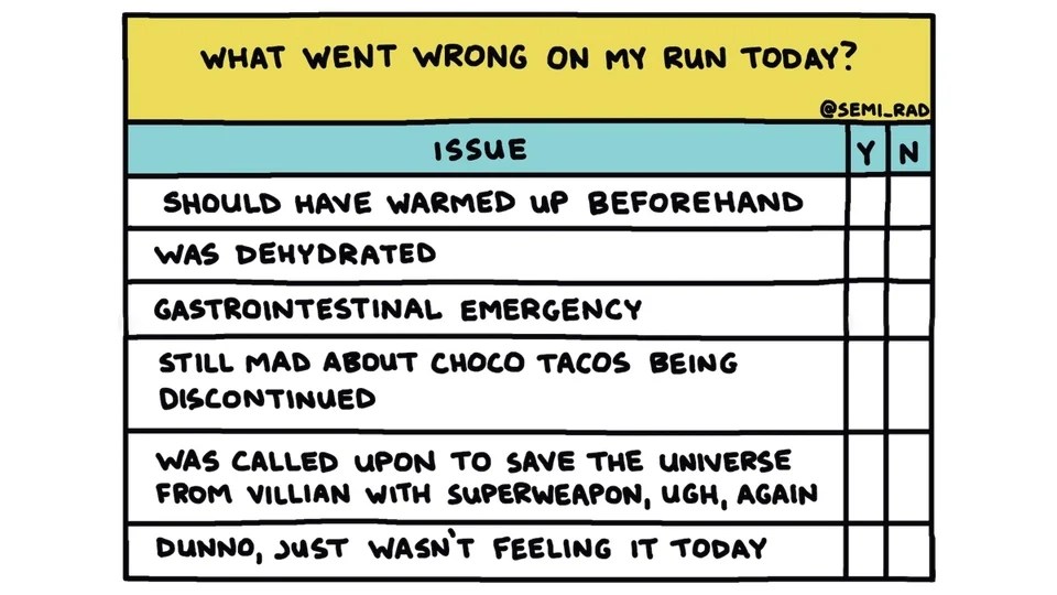 There are a number of misfortunes that can befall a runner during a run and who hasn’t experience some of those listed below. (Thank you Outside Online for posting your almost-exhaustive list this morning). But, my problem was not included on the list.