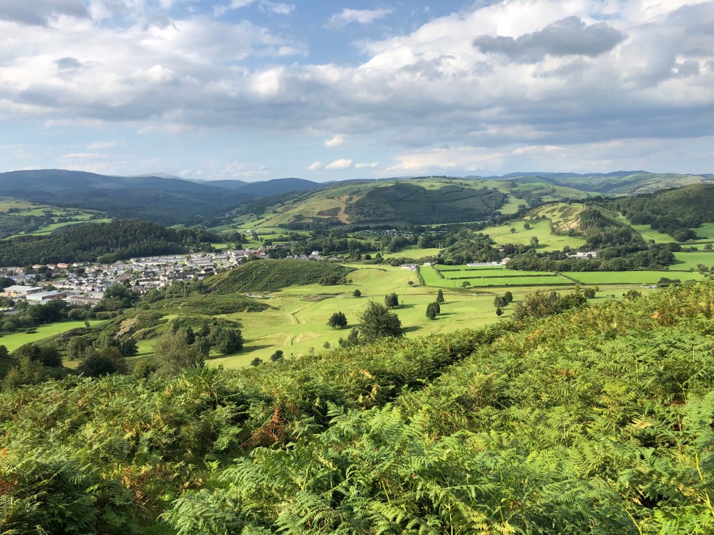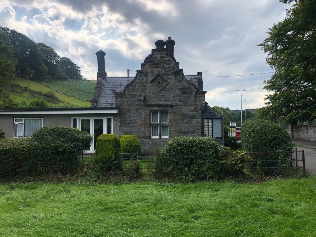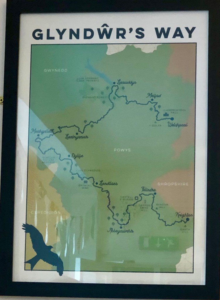 Before returning to our hotel for dinner, we take a brief hike down Glyndwr’s Way and then a climb up an extending trail. Machynlleth is still described as a market town. It has a thriving main street with an independent bookstore, pubs, clothing stores, everything you could want in a small town. By the way, the ancient home along the trail with modern addition pictured below has a ‘for sale’ sign should anyone be interested in a move to an idyllic Wales village.