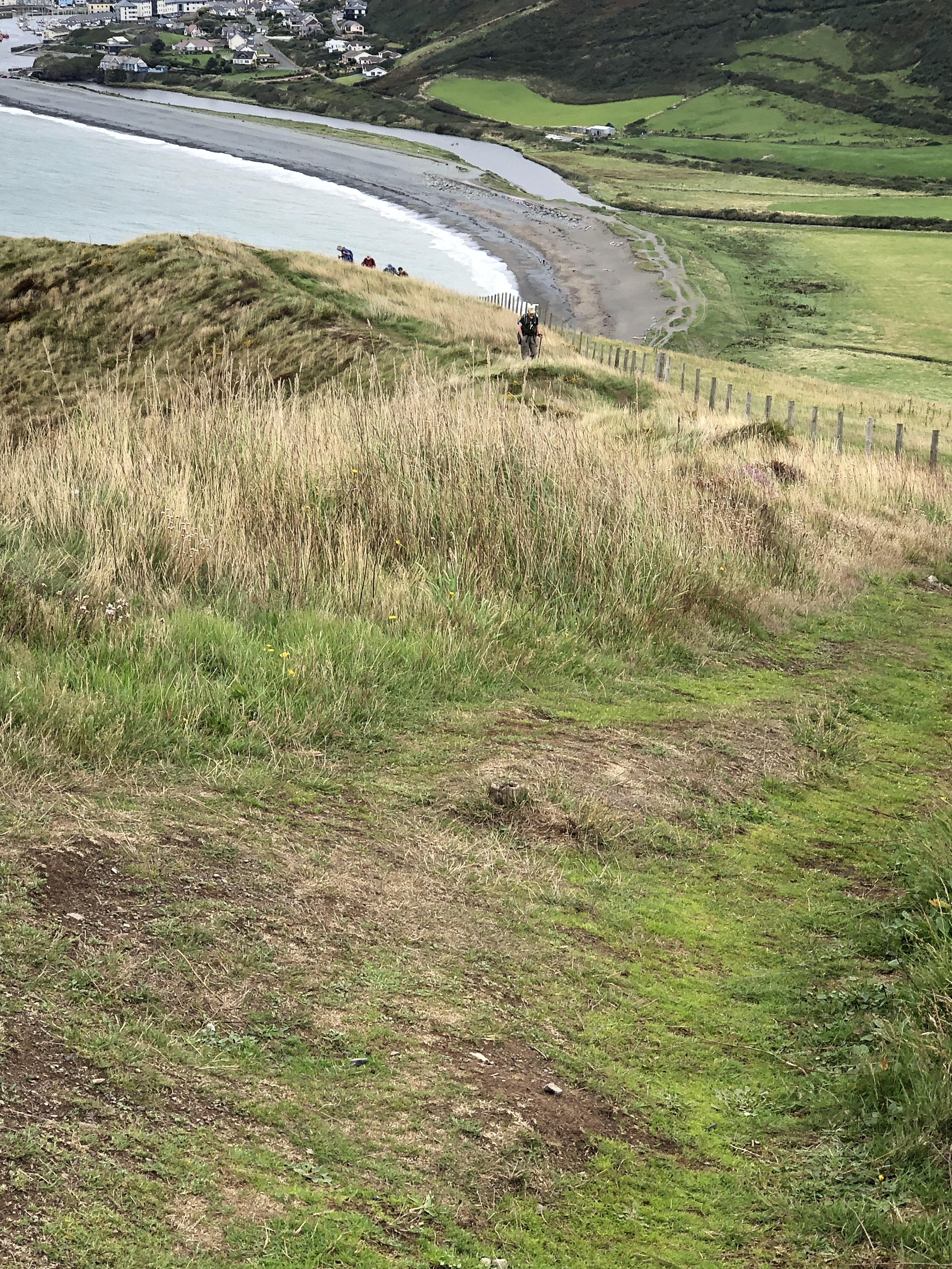 When you expect this path can’t become more breathtaking, it does. Breathtaking and remote. Along this 12+ mile stretch, we saw few other hikers and no local folks. The path along the sea was meditative. Then, walking the crest of Allt-wen and the Penderi Cliffs took us to beautiful and a bit nerve wracking overlooks.