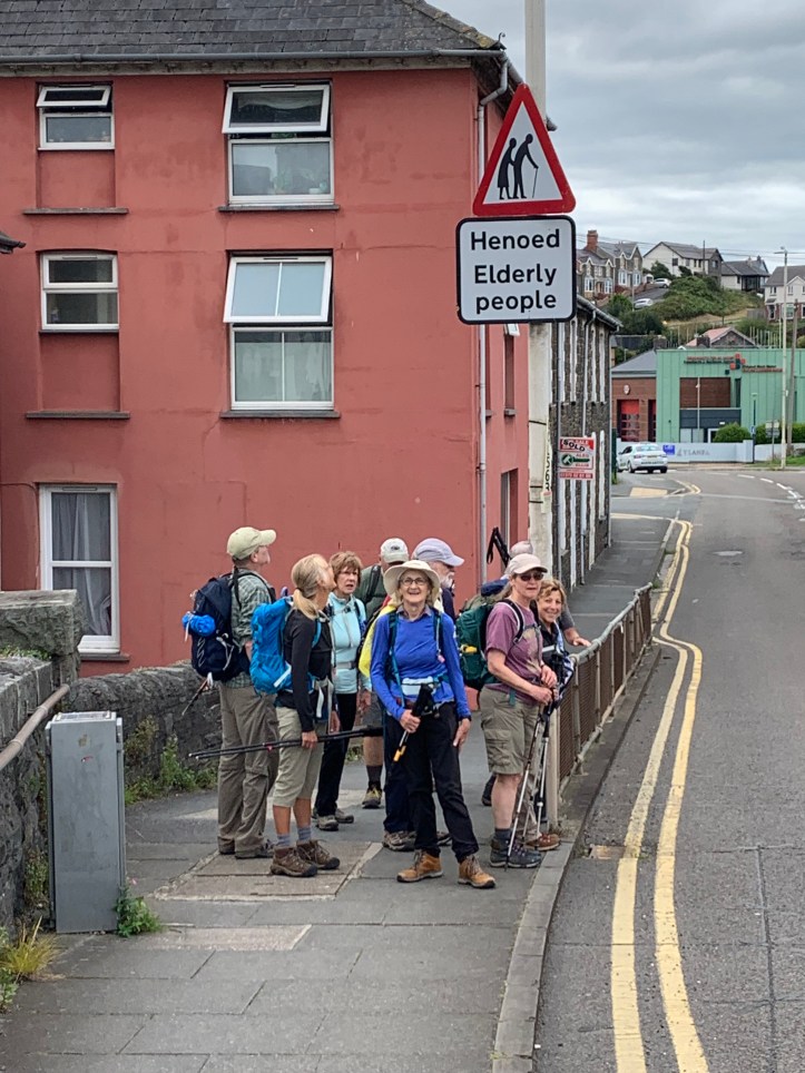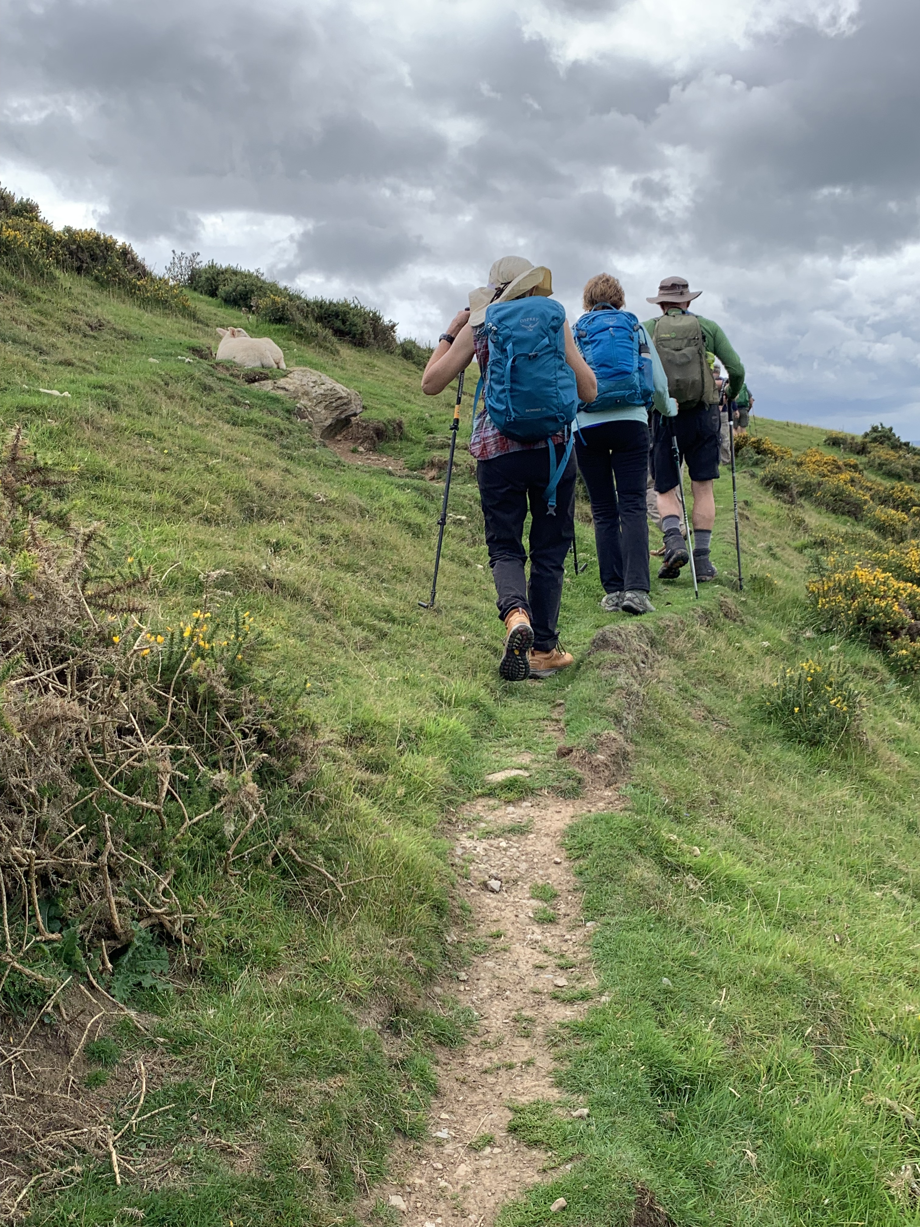 A tongue in cheek remark from a fellow hiker “the Wales Hiking Path where the sheep are marked but the trail is not.” That comment was based on the occasional places where trails converged and markings weren’t clear. Fortunately, our leader and several members of the group had great mapping devices, both paper and electronic, that kept us on the true path. Sheep in Wales are frequently flagged with a paint color for different uses, but those we saw were likely roaming in common areas and may intermingle with another flock thus marked for identification.
