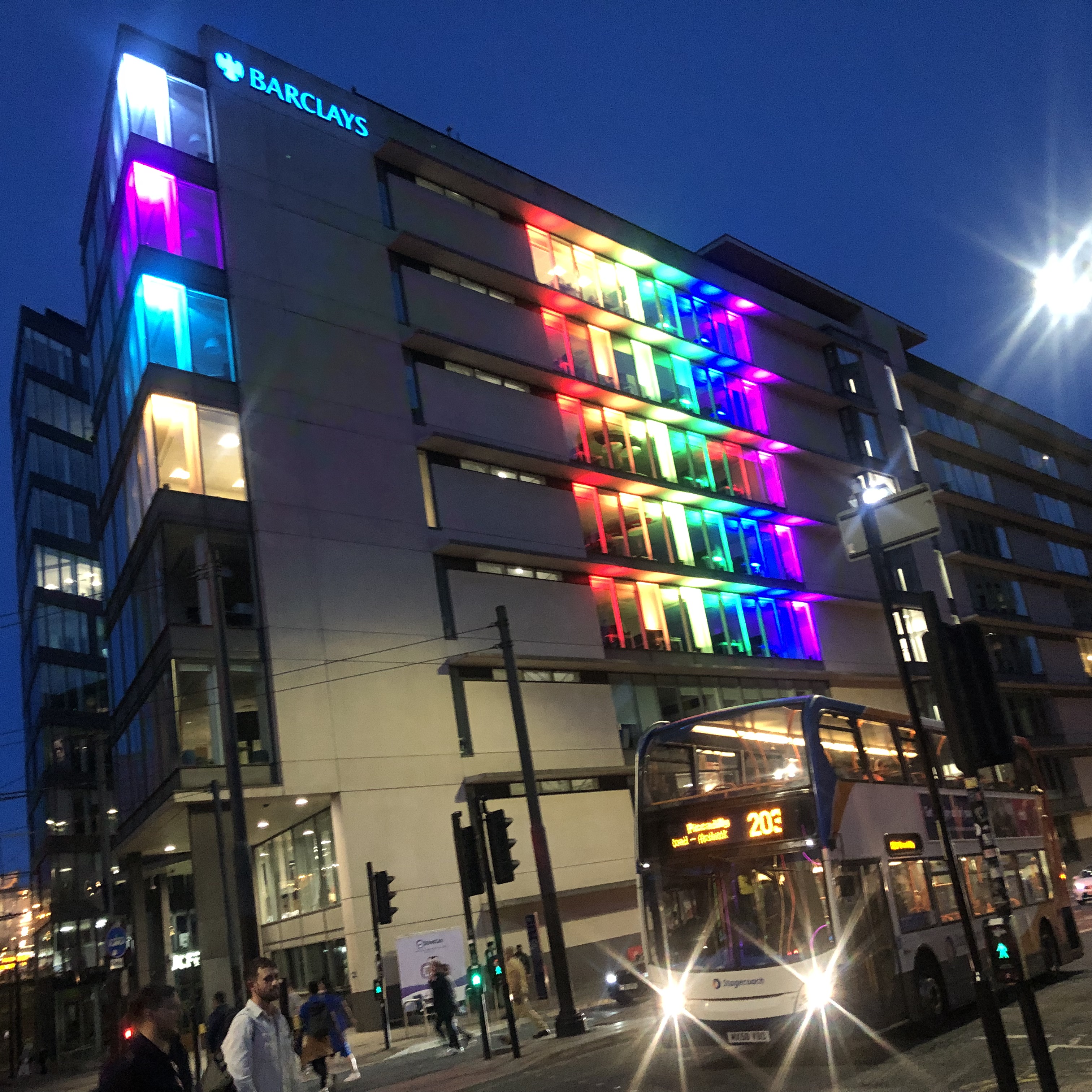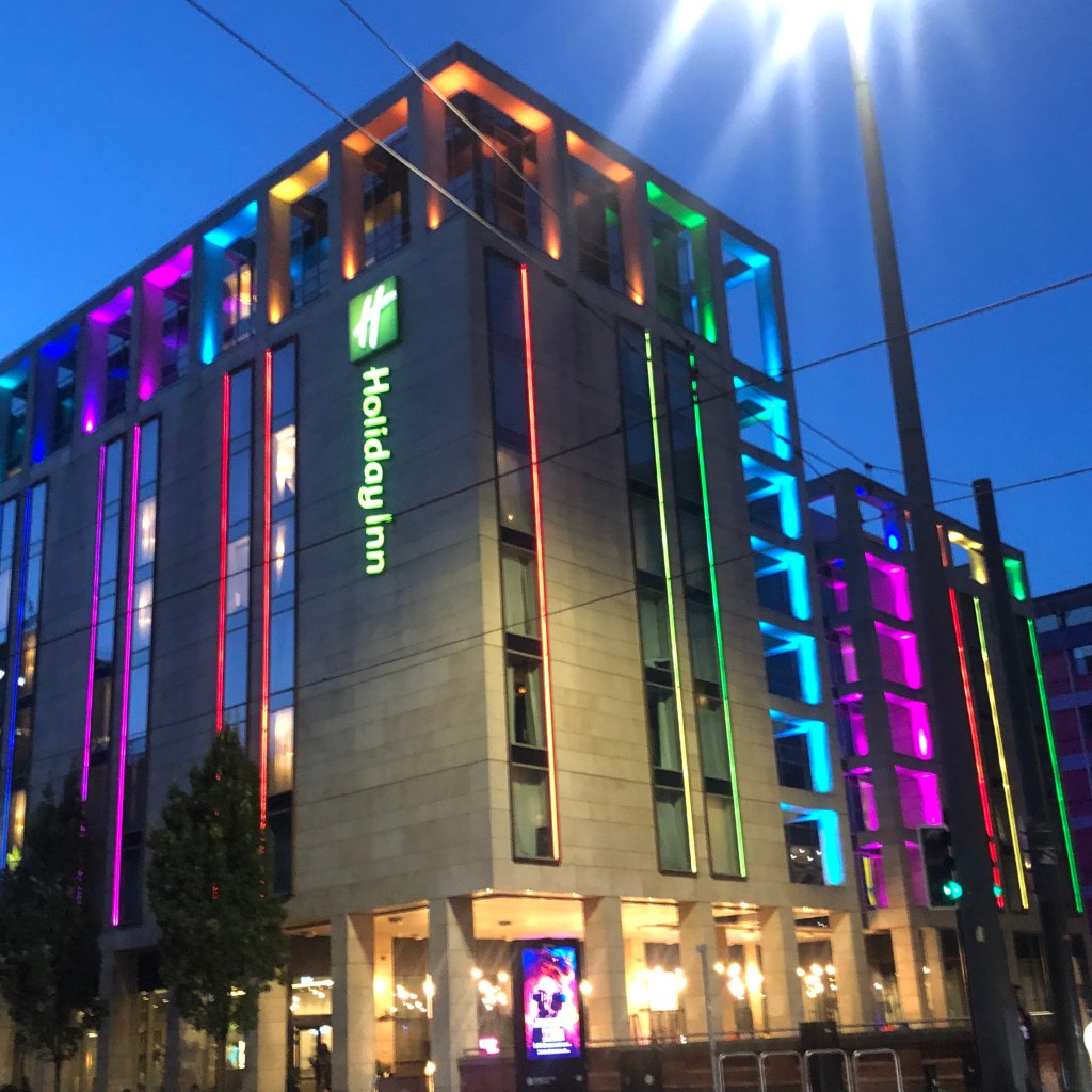 We arrived in Manchester as Pride Weekend was getting underway. Every building in downtown was alight in the colors of the rainbow flag.