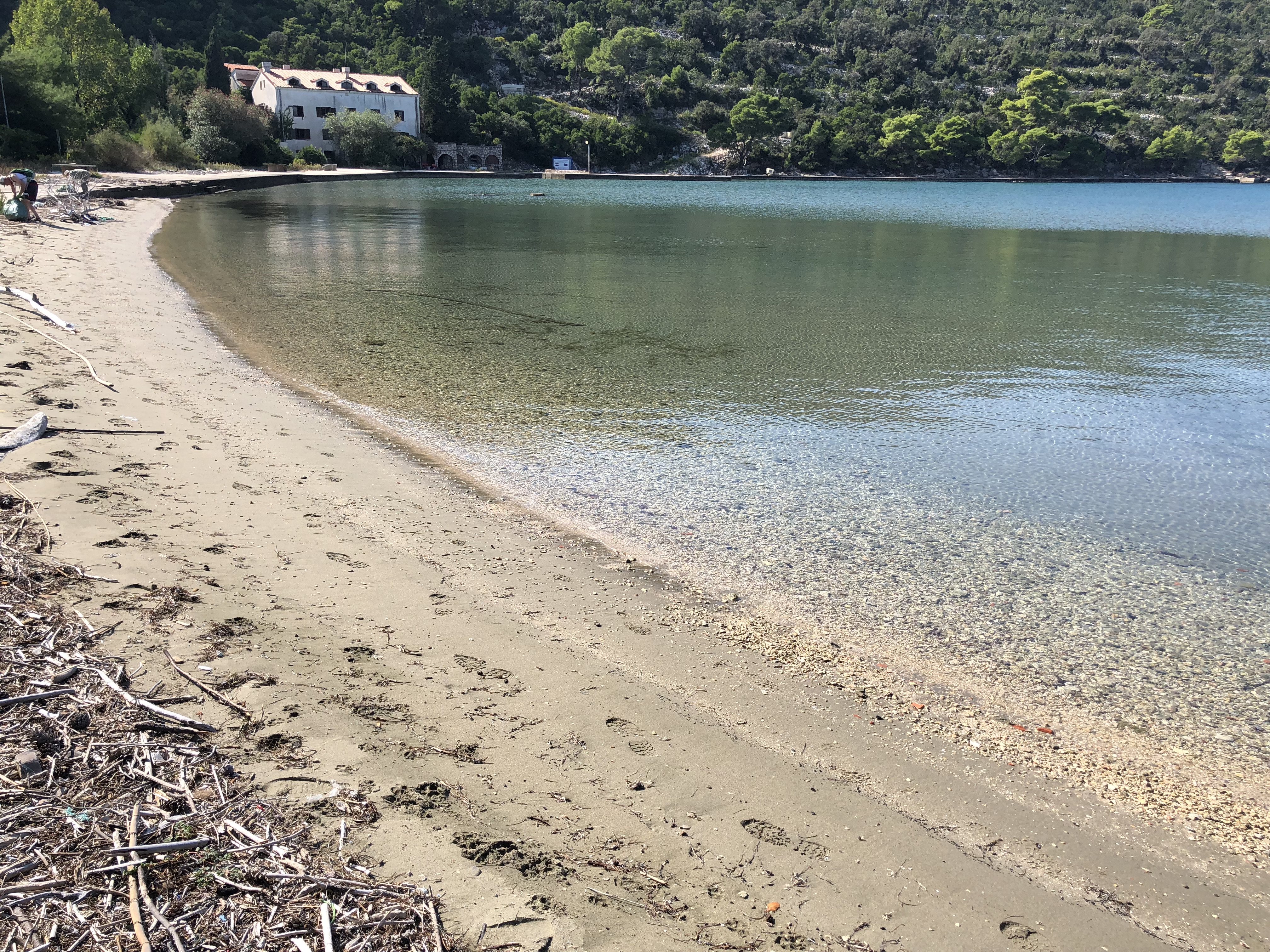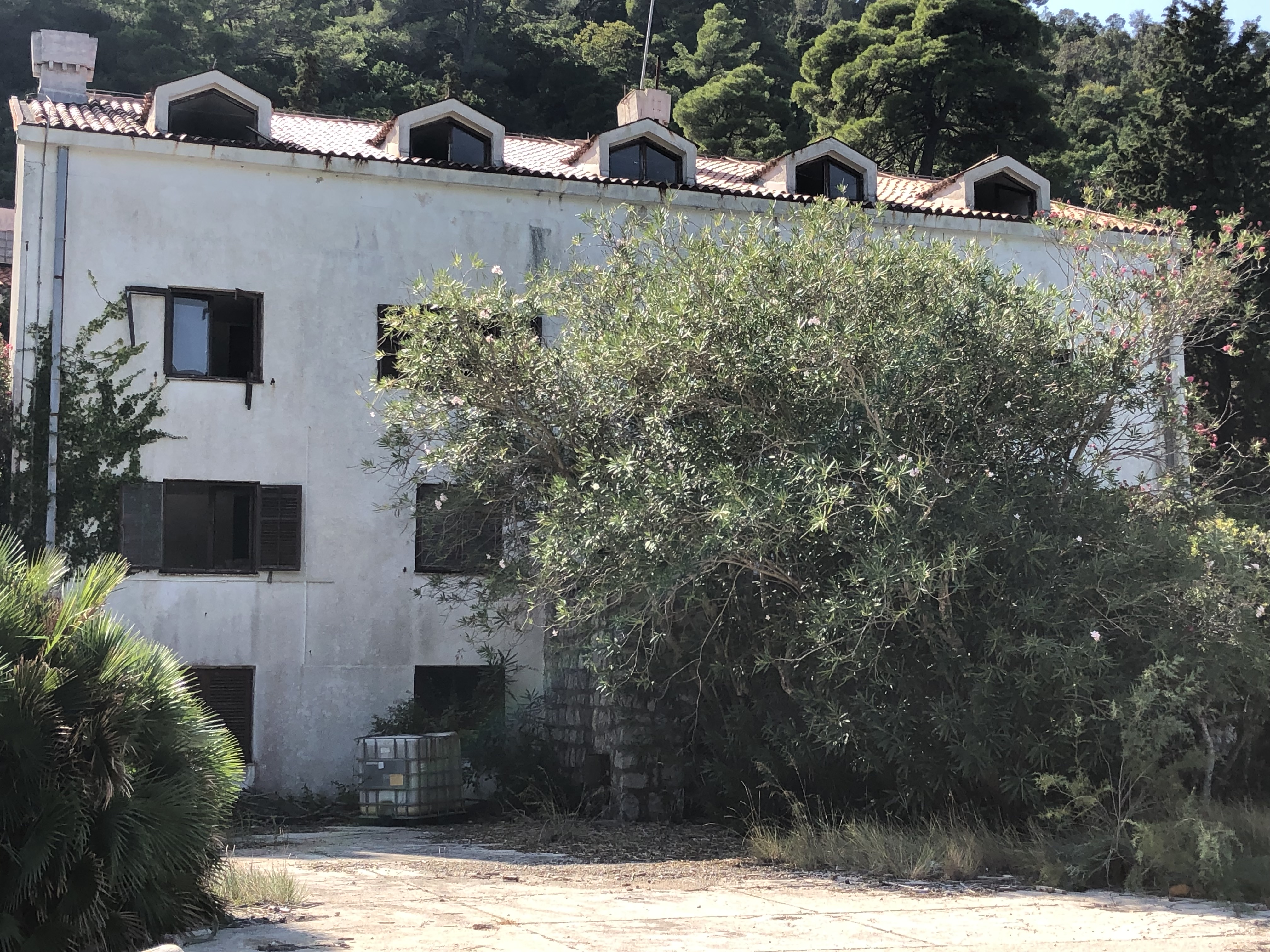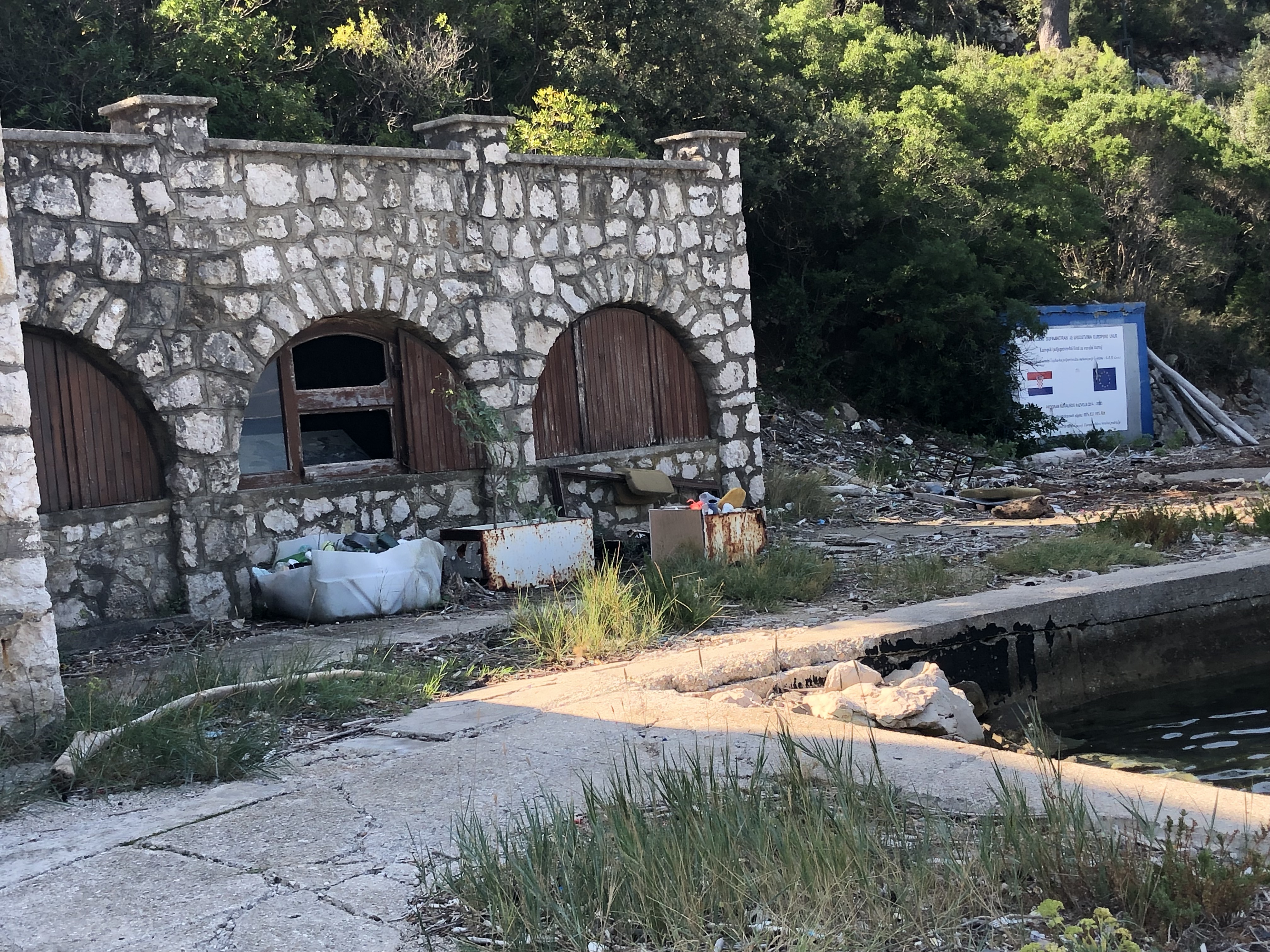 There is an eerie beauty to Jakljan. The bay and beach were breathtaking, in spite of the trash left behind and washed in from who knows where. Along the shore stood the remnants of what looked an elegant seaside resort from the past. Why it had been left to decay I don’t know. A blog I founnd,the Piece Prize, wrote that it was developed in 1974 as a home for children and operated until the 1990’s war with Yugoslavia.