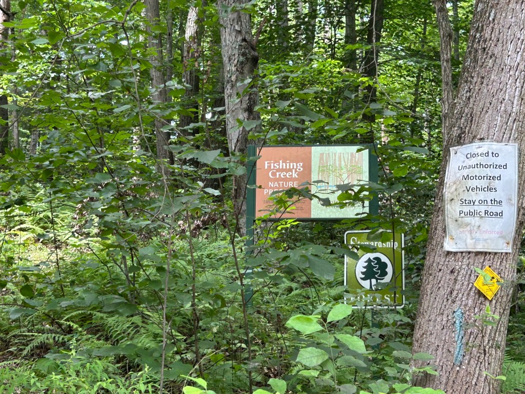 We continue our pilgrimage through the area now in the Fishing Creek Nature Preserve. There are three stream crossings to be straddled, done easily enough, no more than ankle deep or so. This path with Fishing Creek meandering back and forth would have provided additional benefit to freedom seekers. Bounty hunters with dogs would have lost the scent as those seeking freedom as they crossed the stream multiple times.